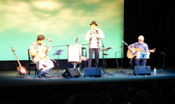 第2部は南米アンデス地方の民族楽器サンポーニャ、ケーナの奏者、岡田浩安さんと馬頭琴、喉歌の嵯峨治彦さん、ギター、ブズーキの星直樹さんのアコースティック・トリオによるネーチャーコンサート。